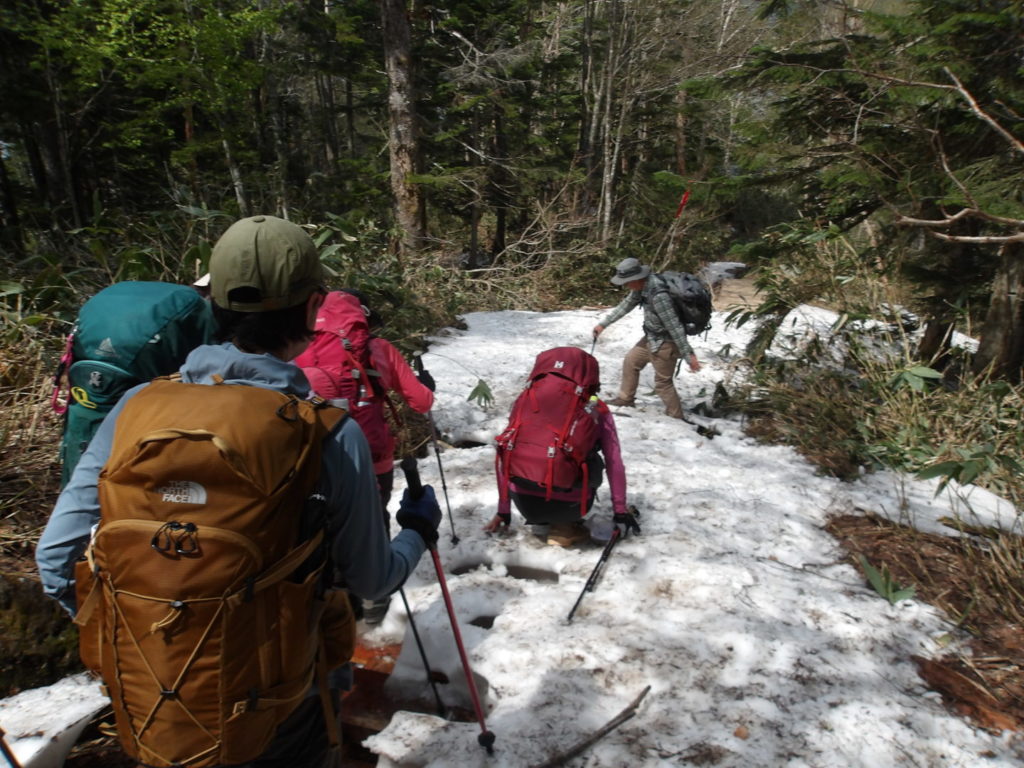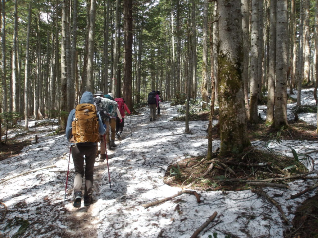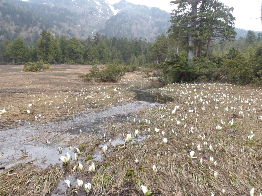 三平峠のあたりは雪が残っていて踏み抜きに気を使いました。尾瀬沼が近くなってくると一面に咲きたての美しい水芭蕉を見ることができました。隧ケ岳を背にしたたくさんの水芭蕉は夢のような景色でした。