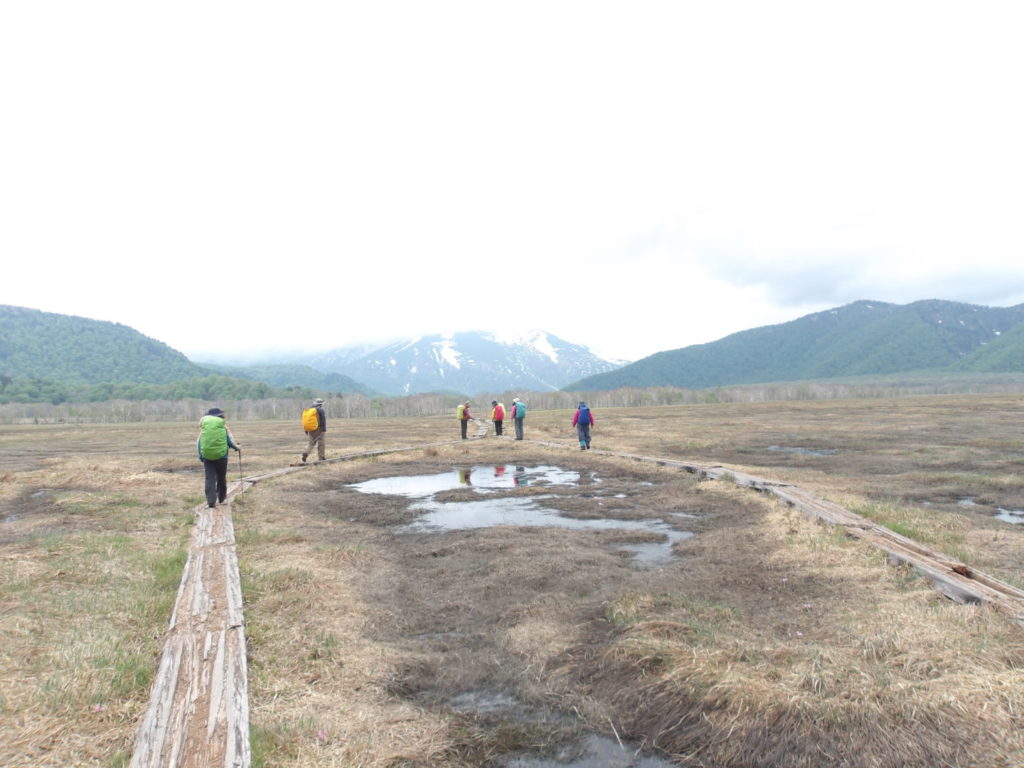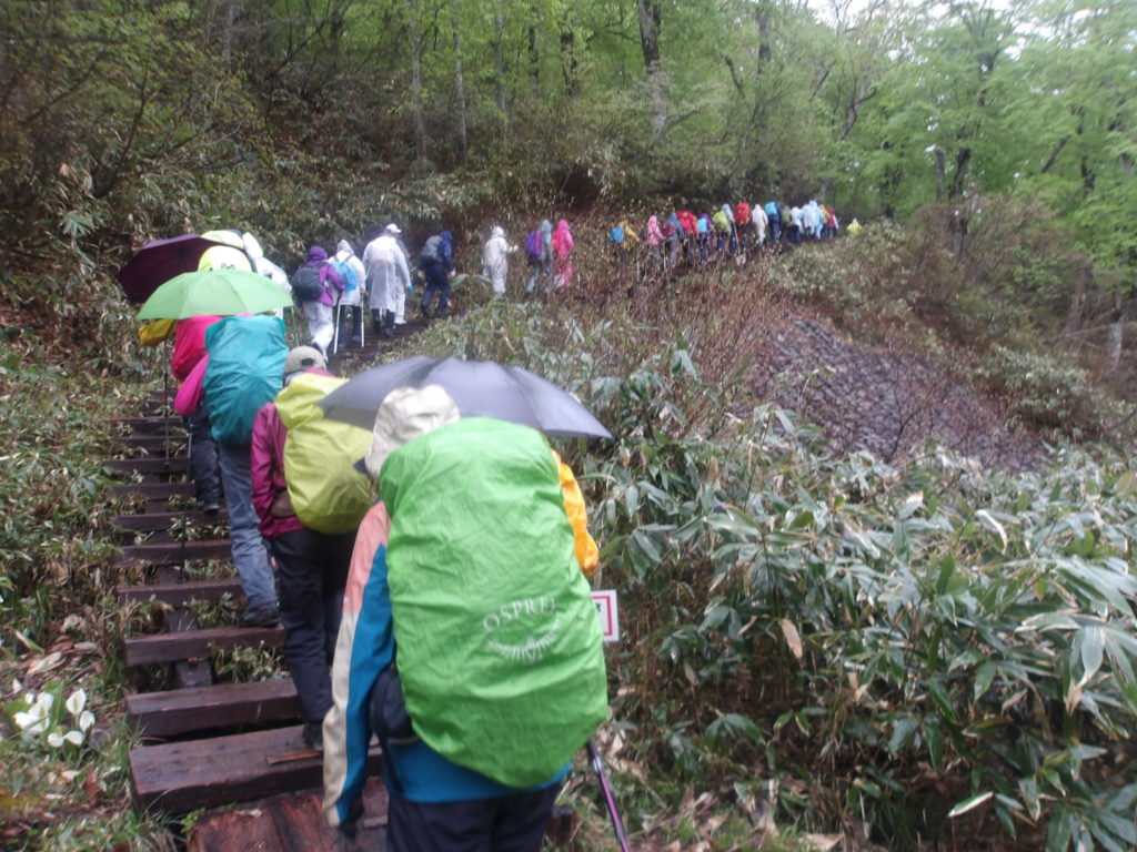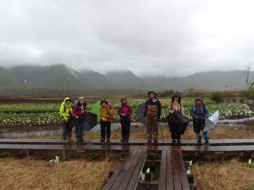 2日目は雨でしたが長い木道歩きの尾瀬ヶ原もたくさんの水芭蕉や黄色のリョウキンカ至仏山と飽きることなく歩けました。山の鼻から鳩待峠は大渋滞になり速度が速くなったり遅くなったりとご迷惑おかけしました。
