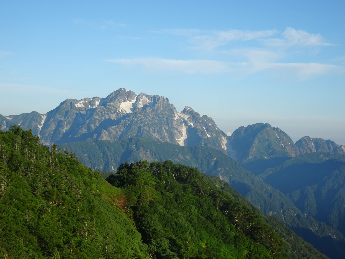 心配していた天候も予想以上の好天で、暑さに苦労した面もありましたが予定の登山が出来て参加の皆さんには感謝しております。カメラマンをしていただいた坂井さんには、健脚を活かしてパーティーの前から後ろから素晴らしい写真を撮影していただき感謝しております。立山連峰をはじめとして北アルプスのオールスターズの眺めを楽しむことが出来ました。また運よく2日続けてライチョウを見ることが出来ました。ただ初めての山で、うまく休憩場所を見つけることが出来ず、ご迷惑をかけました。(植田)