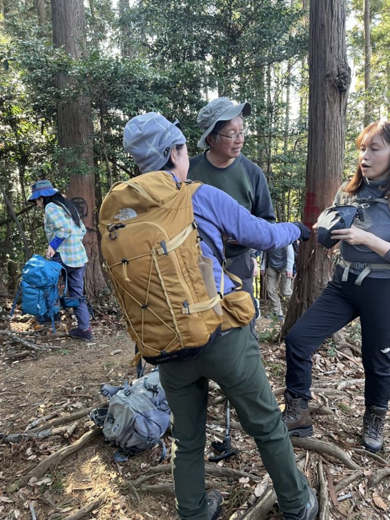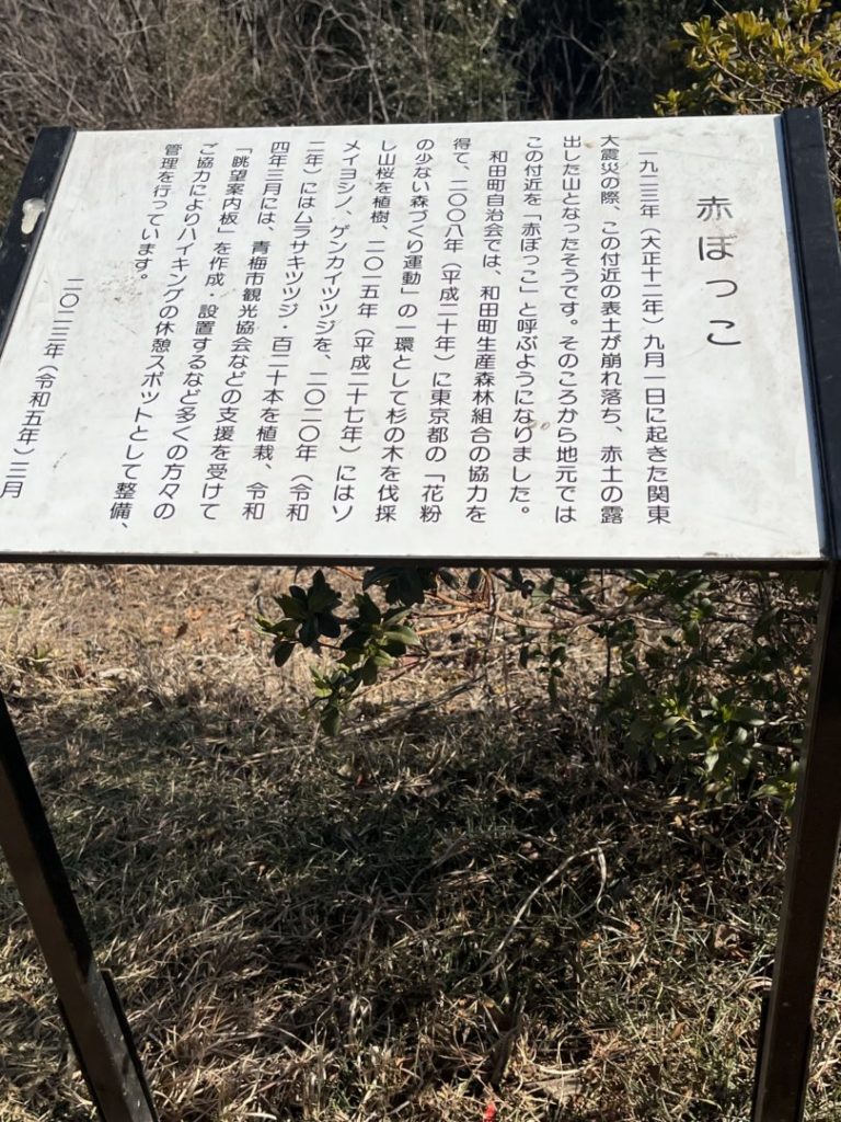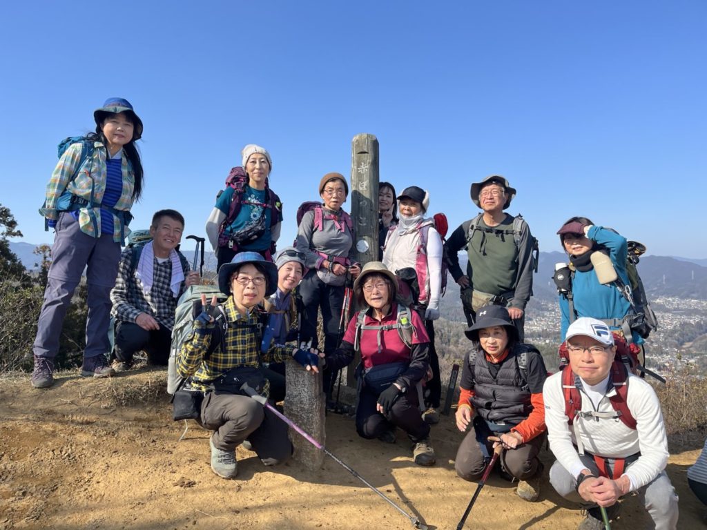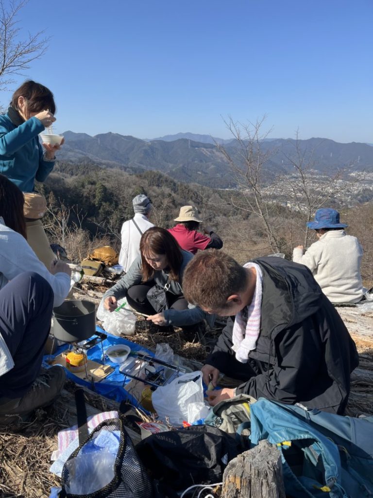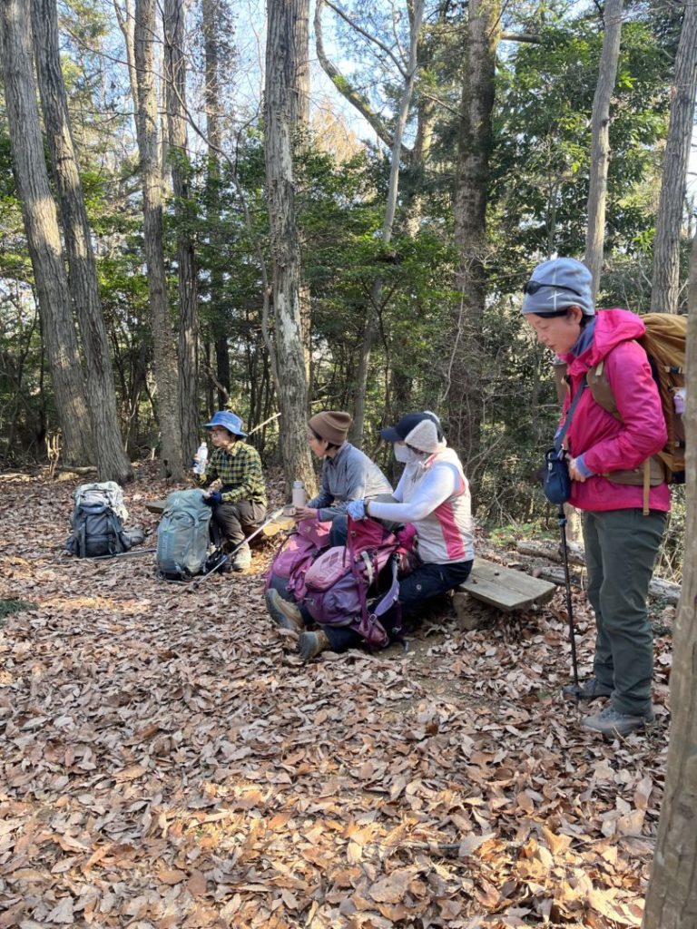 登山道は比較的整備されており分岐点の案内板が分かりやすくて安心して登る事ができました。少しアップダウンもありましたが30分に1回は休憩をとり、無理なく山頂までたどり着きました。山頂の赤ぼっこは見晴らしが良く広さも充分あり昼食は細井さん朝倉さん、近藤さんのご協力で中華スープと甘酒を頂きました。とっても美味しかったです。いつもありがとうございます。
